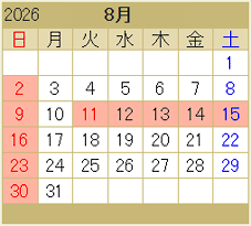 ※ゴールデンウィーク・お盆休み・年末年始は長期休業となりますのでご注意下さいませ。
